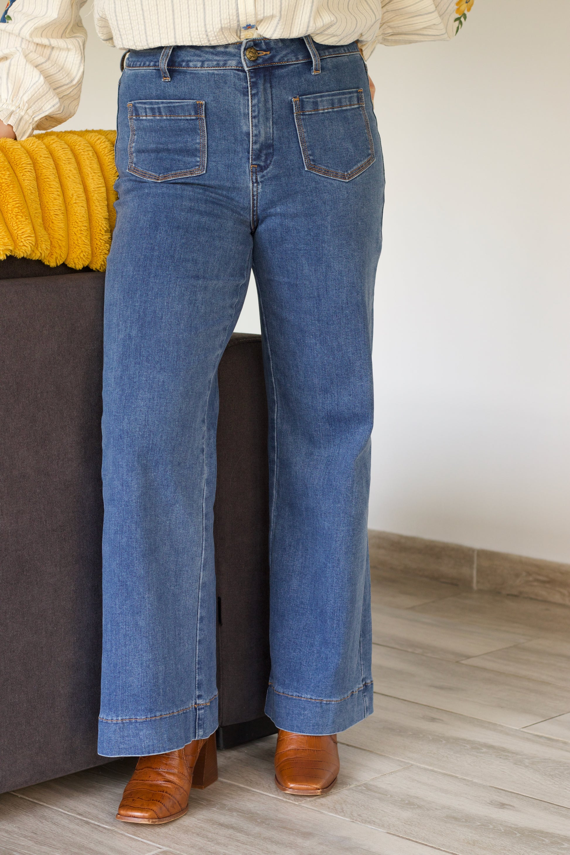 Jean taille haute avec élasthanne à la coupe évasée des hanches aux chevilles.